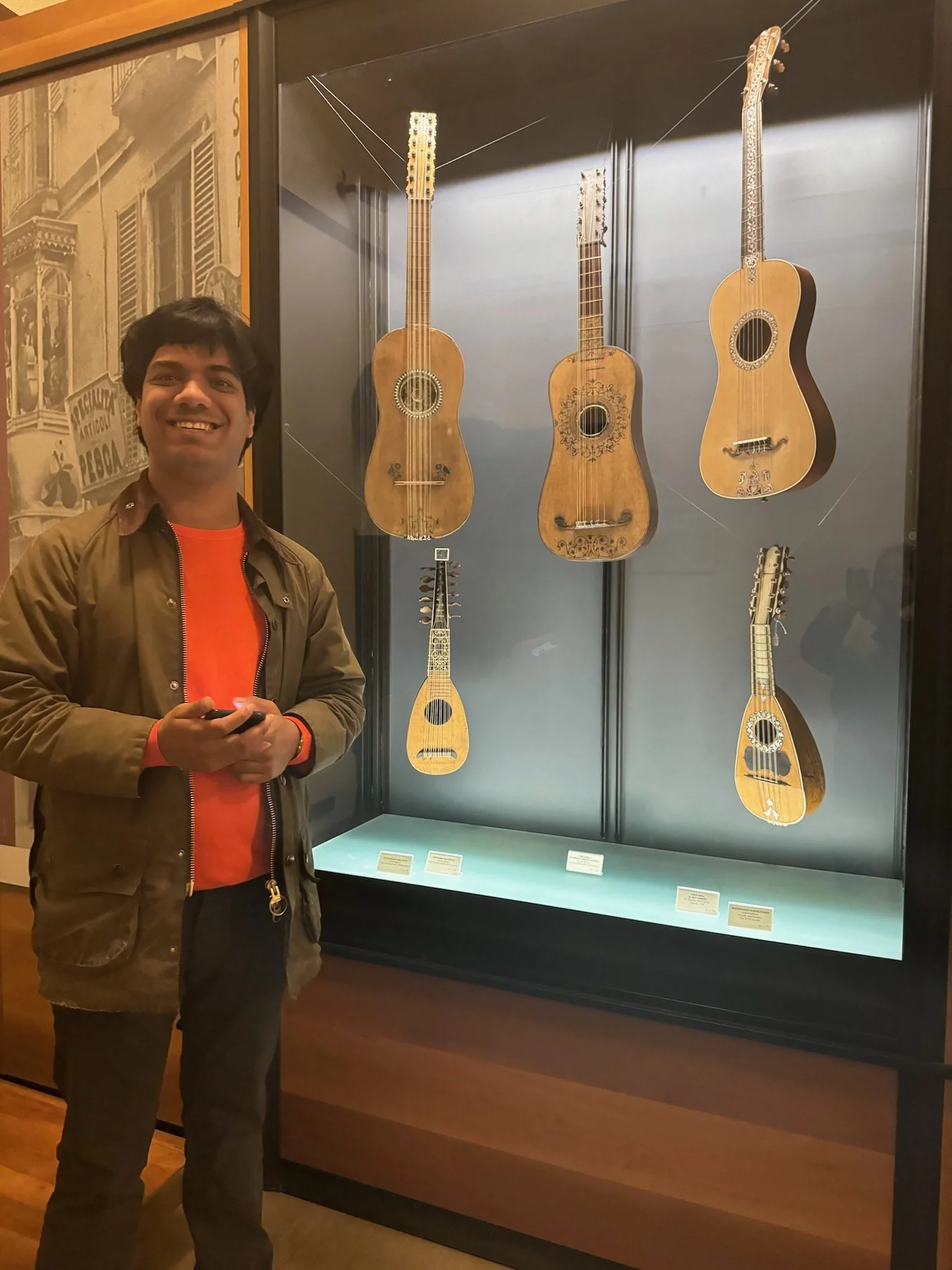 Trying out a Hauser II at Lubos Naprstek’s workshop, 2025.