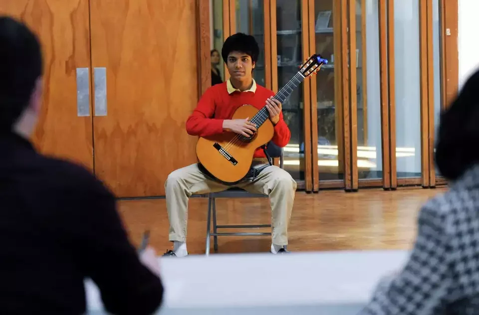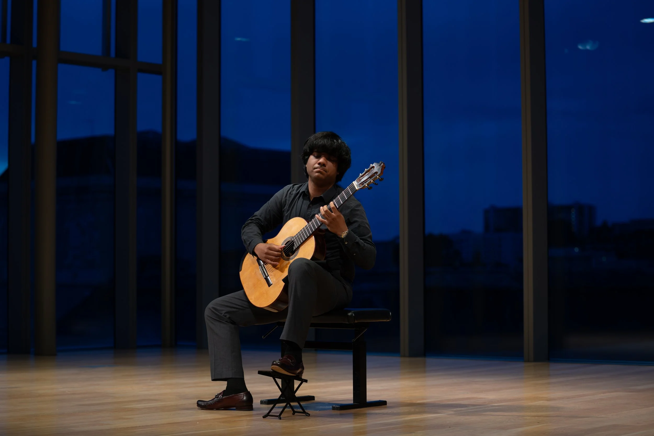 Performing for guitar legend David Russell in a masterclass at SF Conservatory, 2025. Photo credit - Junhao Ma.
